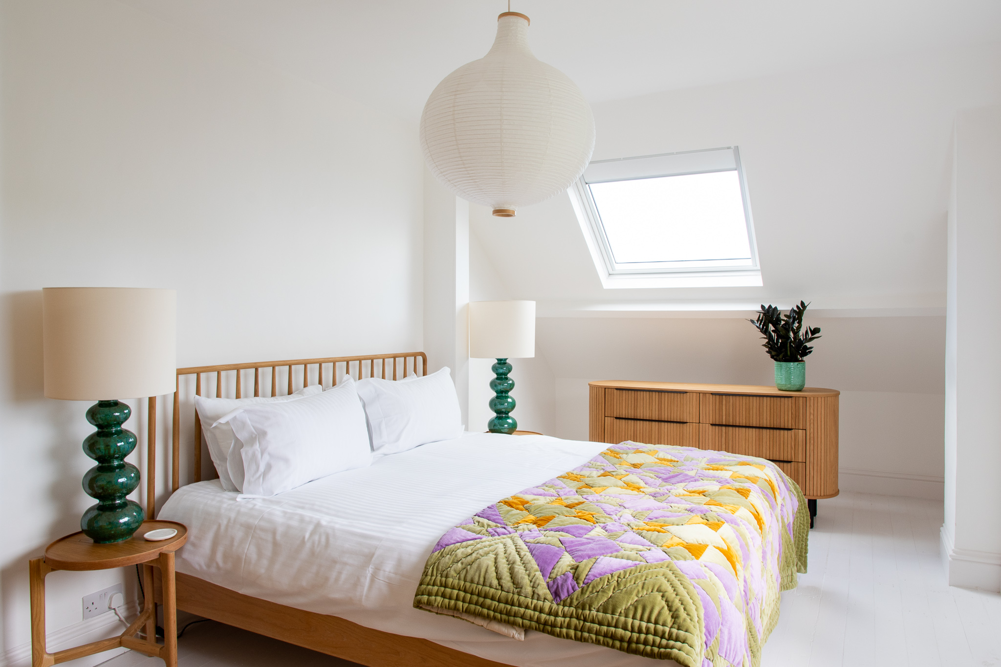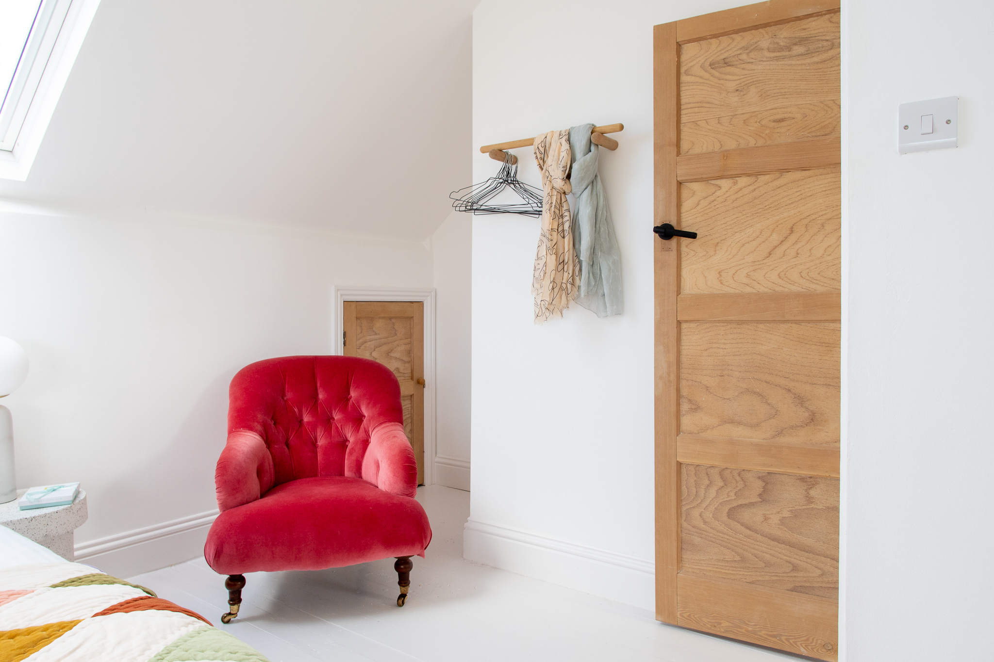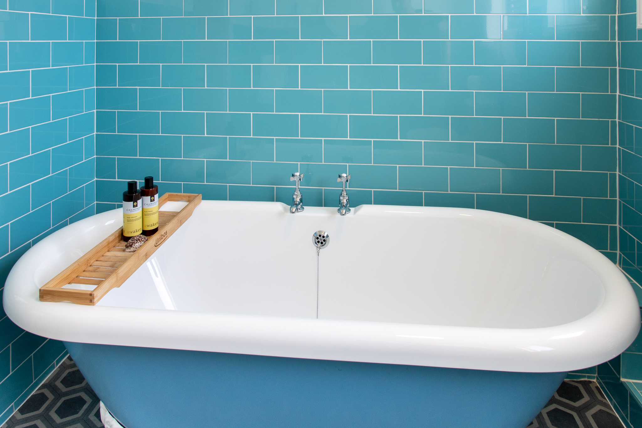 The master bedroom has a double bed with a free standing slipper bath also in the room! Exposed chimney breast and traditional floor boards make this bedroom a real treat!