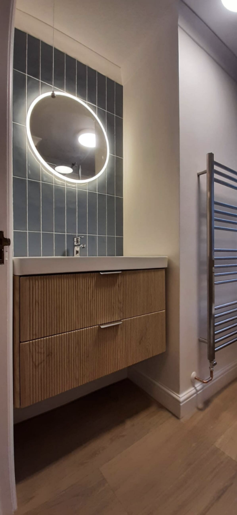 Tide Knot Cottage's traditional staircase takes you upto the first floor. The front bedroom overlooking the quiet cobbled street has 2 single beds, original panelled walls and inbuilt storage wardrobe and feature fireplace (not for use). A newly refurbished shower room with WC and sink with porthole window is located in between the 2 bedrooms.