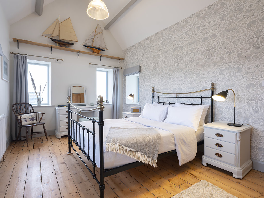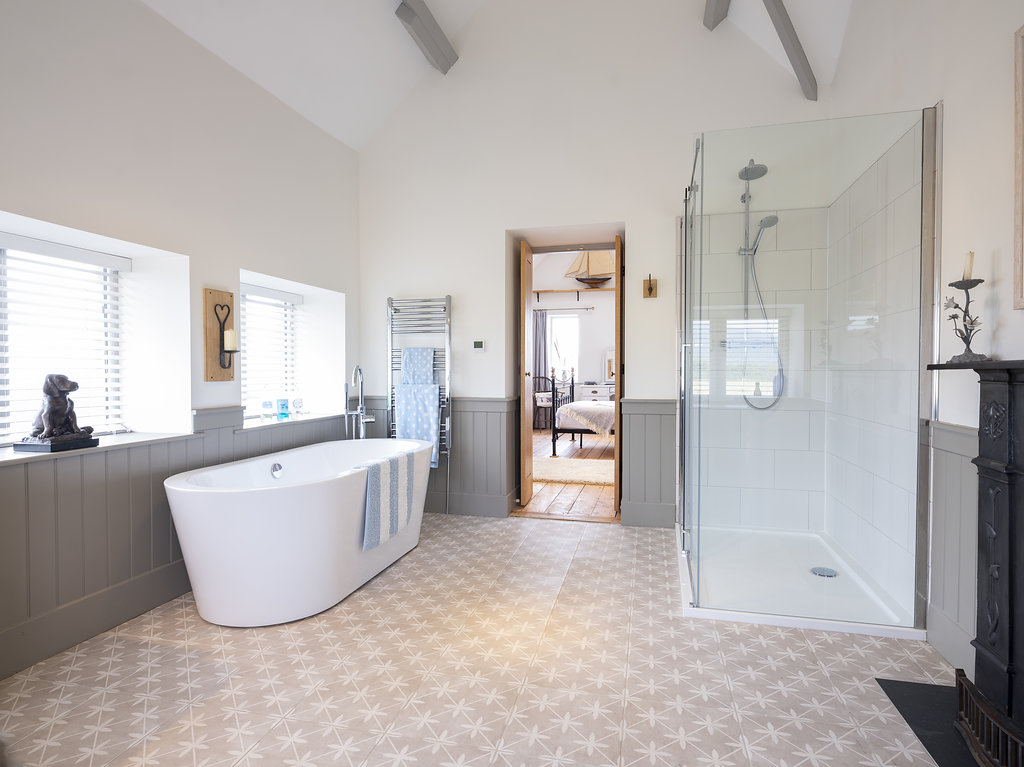 Take your pick of one of Mulberry Loft’s 3 bedrooms. Sleep under the stars in the primary bedroom which boasts Velux windows with solar powered black out blinds, a comfy double bed, more exposed beams, and a recently added marble shower room. The second bedroom is a considerable king sized room finished to the same high standard and attention to detail, and the third a sizeable twin room with large double window, solid wood flooring and vaulted ceilings.